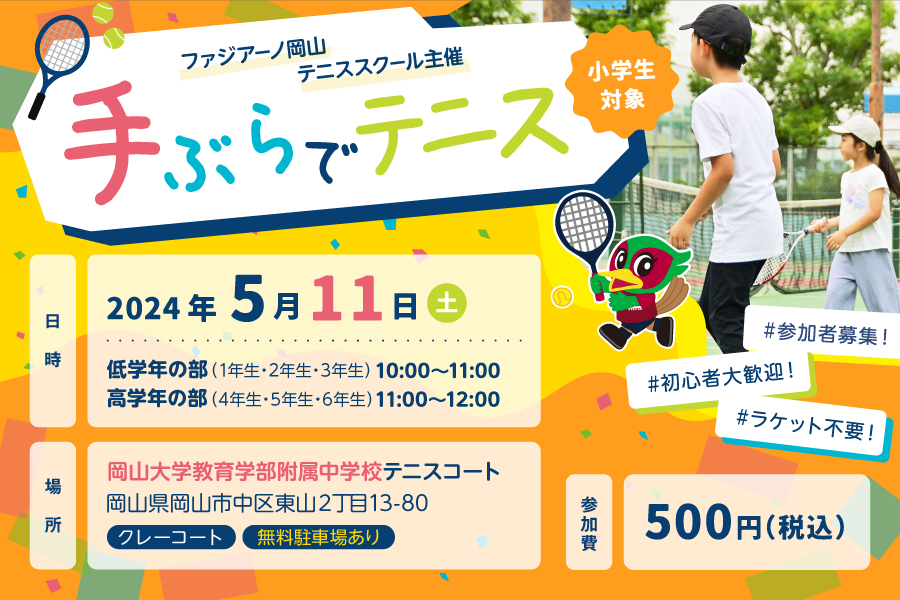 5月11日開催!「手ぶらでテニス」~岡山大学附属中学校会場~